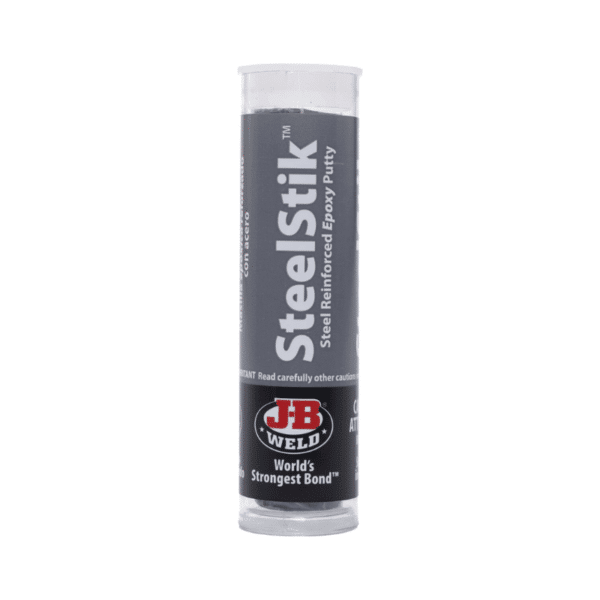 - SteelStik ™ es una masilla epoxi que no se oxida, reforzada con acero y que se puede mezclar a mano y que repara o reconstruye rápidamente cualquier cosa hecha de metal