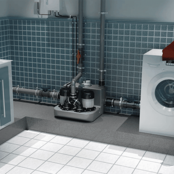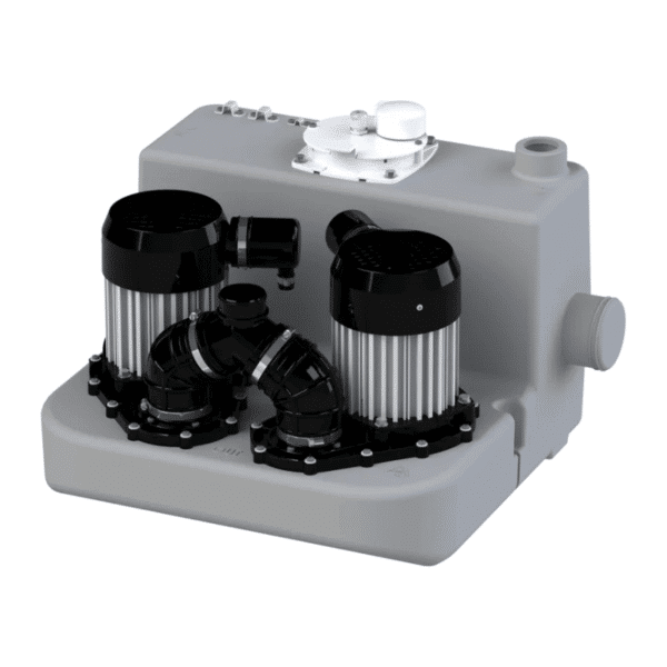 - Potente estación de bombeo equipada con dos motores y diseñada para uso intensivo, ideal para instalaciones donde se generan grandes volúmenes de aguas grises