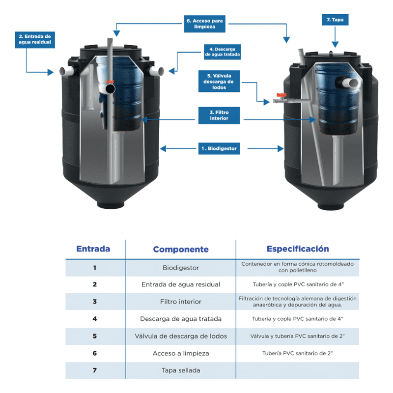 - Sustituye de manera eficiente las fosas tradicionales, utiliza menos espacio, es más ligero y de fácil instalación.