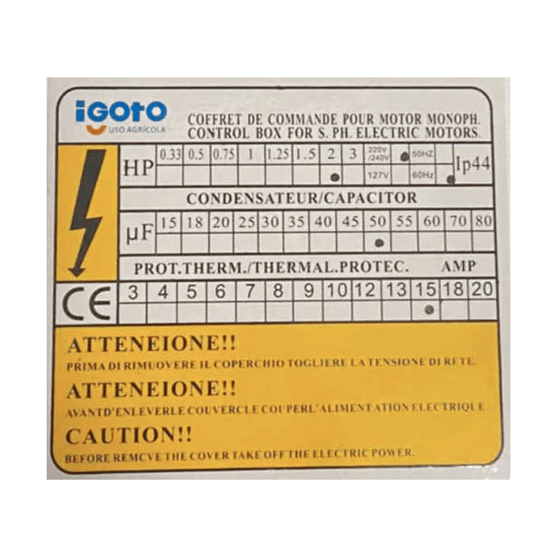 Caja de Control para Bomba de 2 HP 220V 15A Igoto REF-42