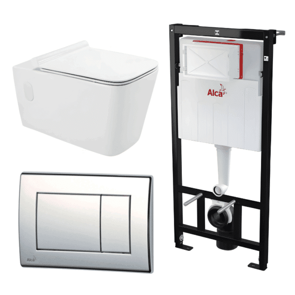 Kit Tanque Oculto A101, Taza Suspendida WC011 y Pulsador M271 Tecnobath-Alcaplast PWCS8-SADRO