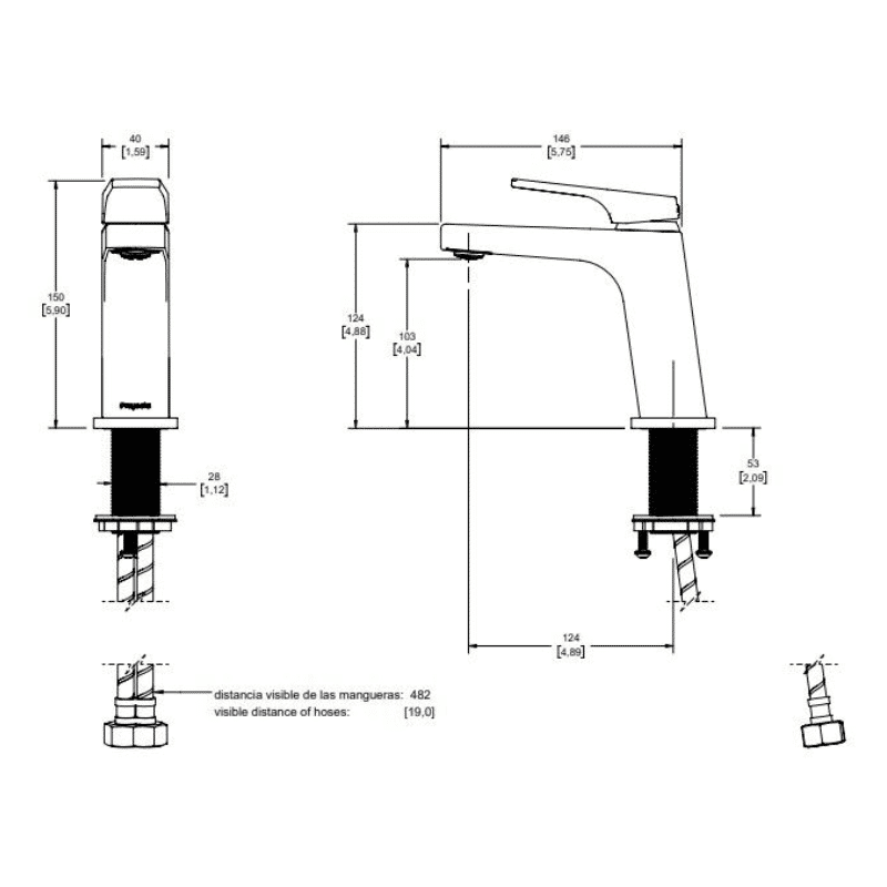 - Monomando para lavabo sin contra, con cartucho de 25 mm