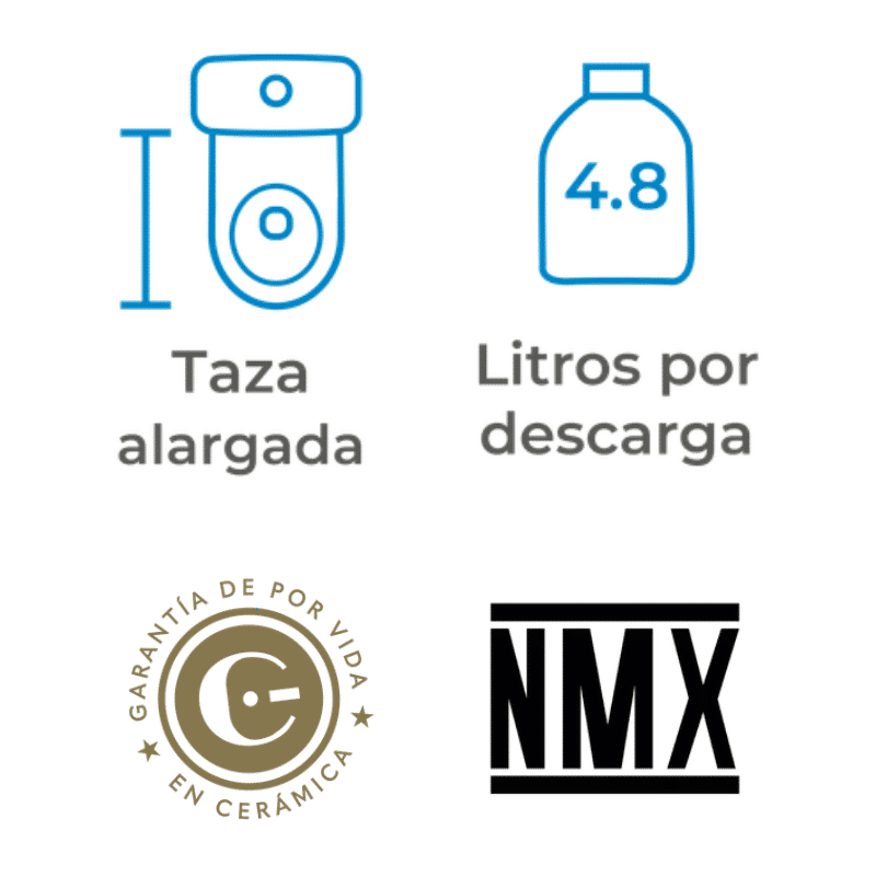 - Diseño ergonómico de construcción robusta con cerámica de 10mm de espesor, con sistema de descarga Turvex con sifón jet, espejo de agua optimo y con trampa esmaltada