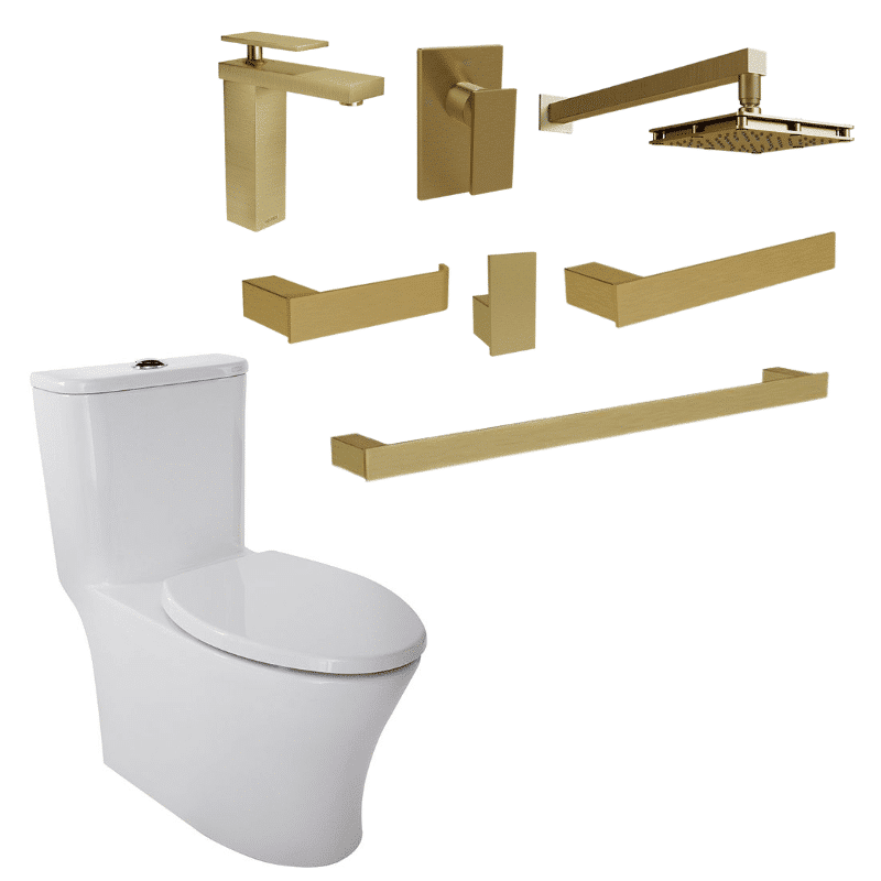 Paquete Duna Rivoli Monomandos + Regadera + Accesorios y WC One Piece Helvex DUNA-RIVOLI P