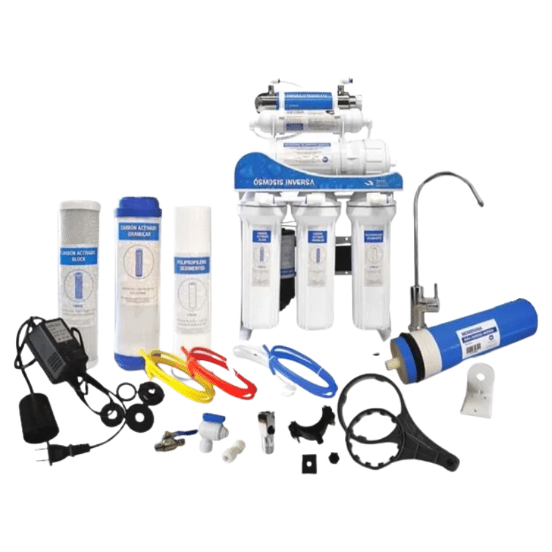 - Sistema de Ósmosis Inversa para reducir varios contaminantes, ya que permite un nivel de filtración muy fino, reduciendo sedimentos, sales, minerales disueltos y metales pesados
