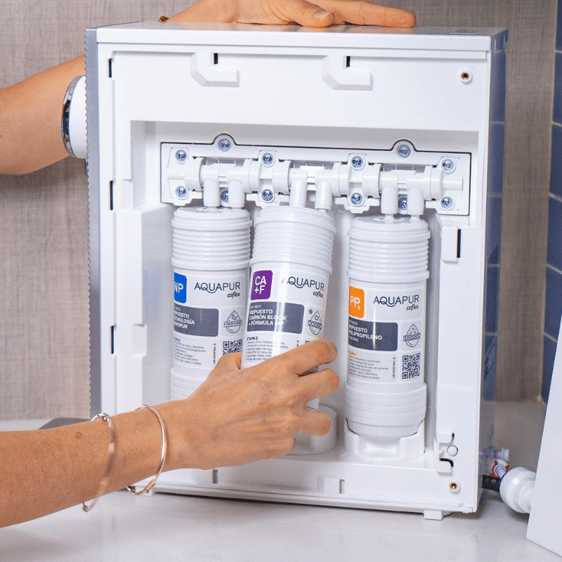 - Sistema de Ósmosis Inversa para reducir varios contaminantes, ya que permite un nivel de filtración muy fino, reduciendo sedimentos, sales, minerales disueltos y metales pesados