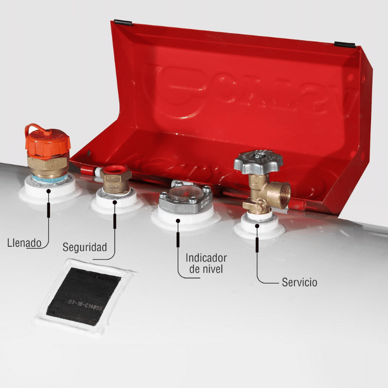 - Cuentan con válvulas de seguridad, llenado y servicio, así como indicador de nivel