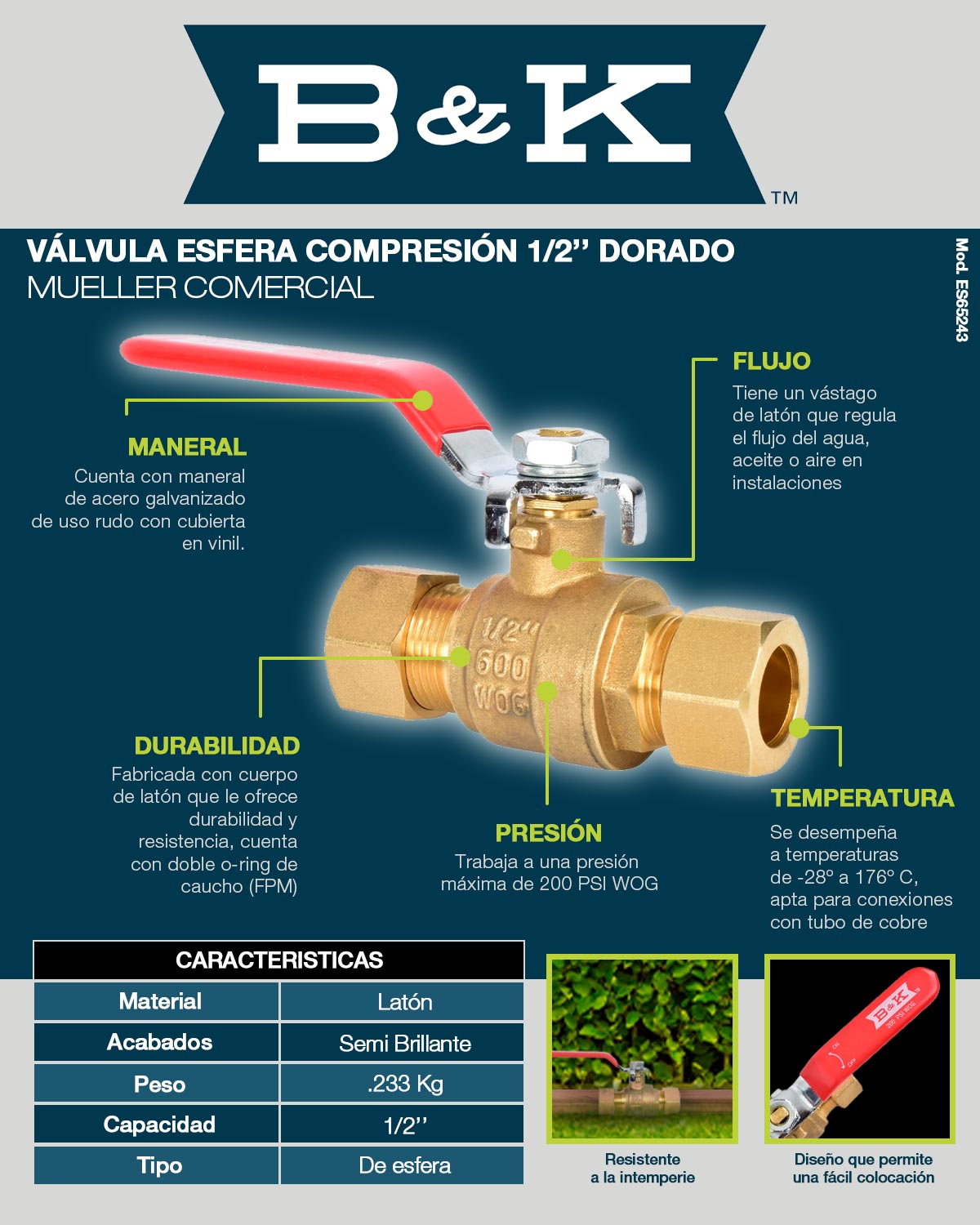 Válvula Esfera Compresión 1/2″ B&K 107-023