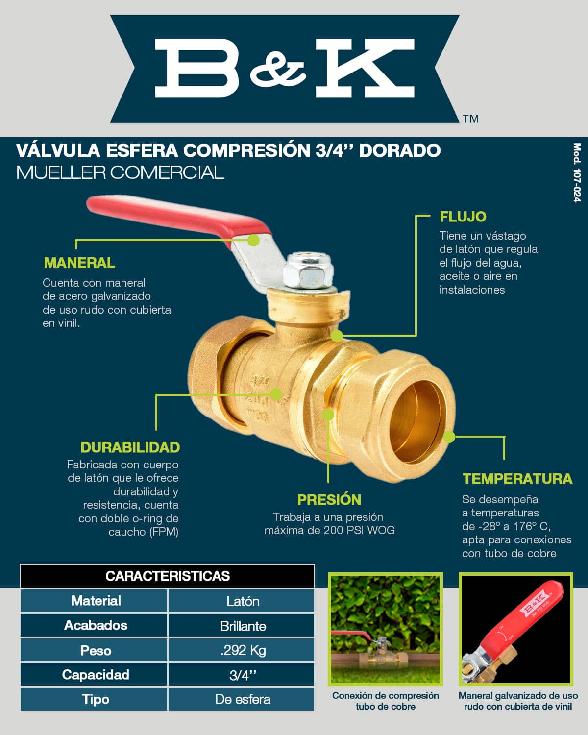 Válvula Esfera Compresión 3/4″ B&K 107-024